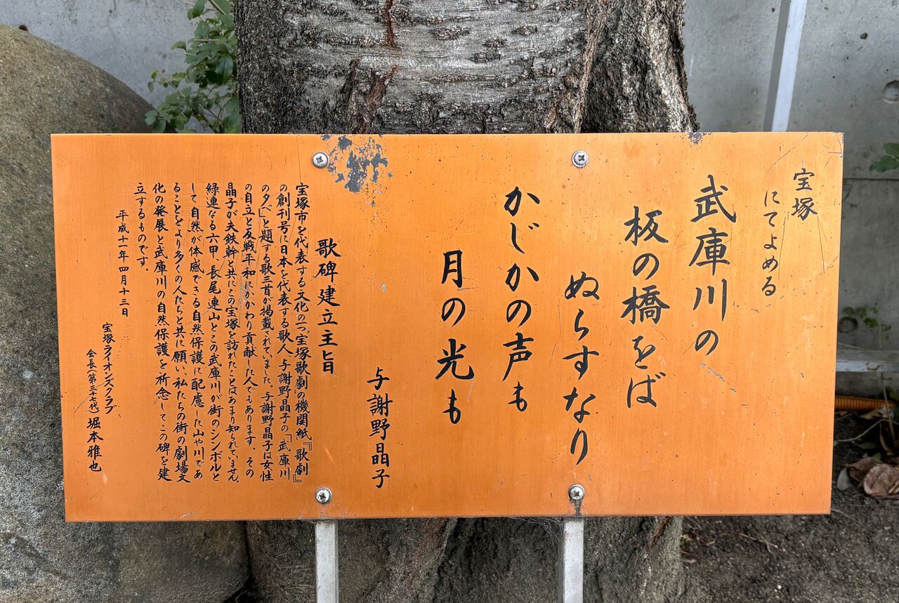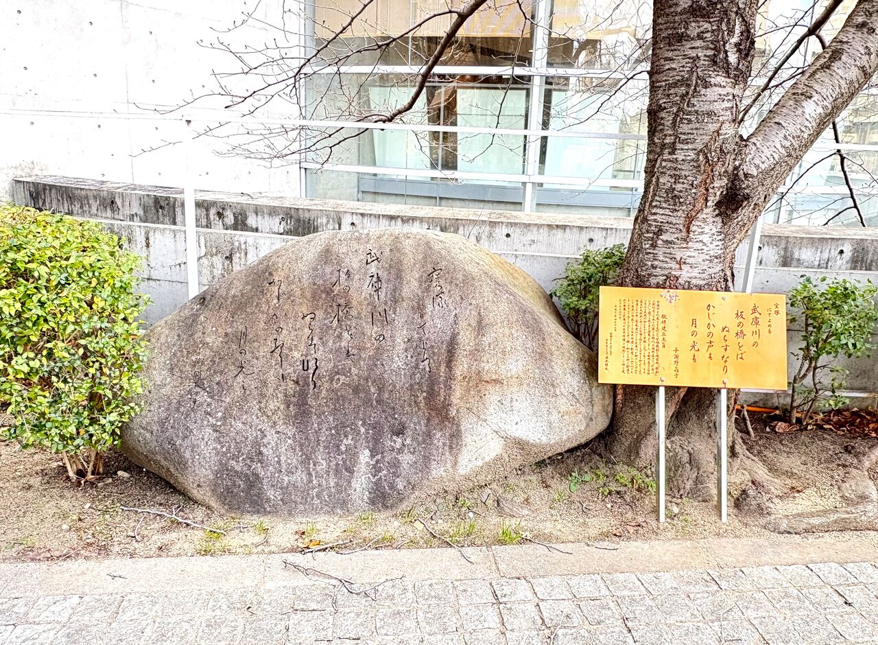 先日、武庫川にかかる宝来橋を歩いていたところ、橋のたもとでこちらの歌碑が目に留まりました。