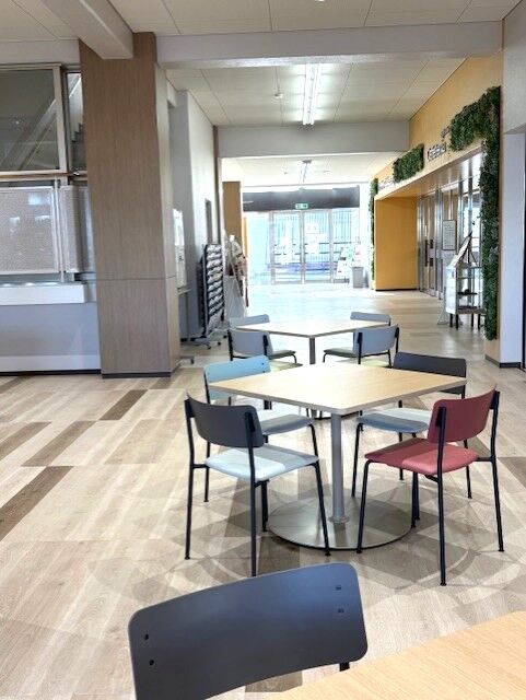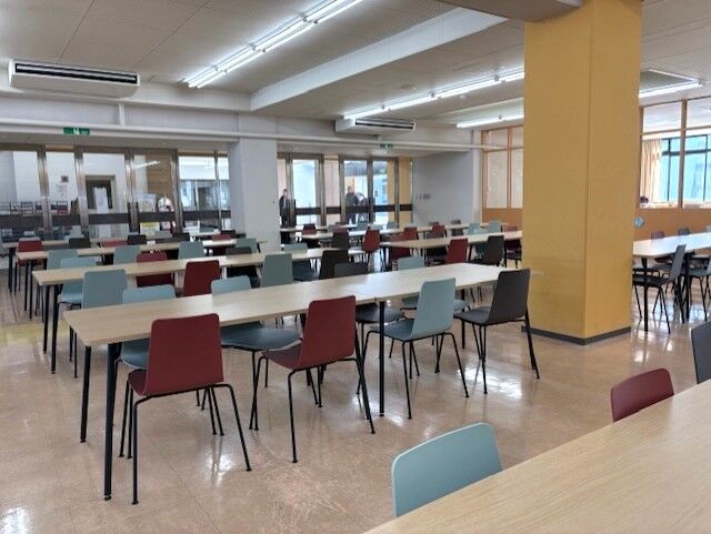大学食堂のテーブル席はいろんなタイプがあり、とてもゆったりとしています。取材日は2月の春休み期間でしたので、日頃より少ない人数だということでしたが、静かで落ち着いていました。とても綺麗な食堂でした。