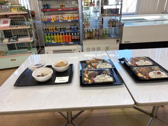 食堂内には売店もあり、美味しそうなハンバーグや焼肉のお弁当も売ってありました。画像には写ってないのですがお菓子や駄菓子、パンなどもありました。山の上のキャンパスなので、嬉しいですね。