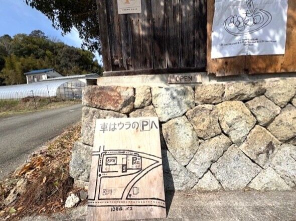 車は裏の駐車場に停めてください。