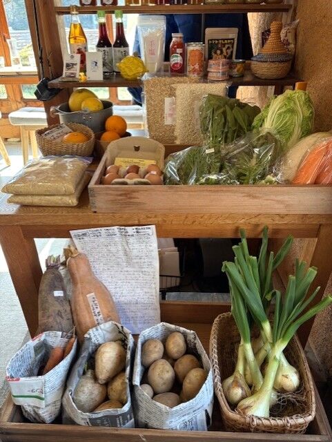 店内の一角に野菜コーナーが。「もっといろいろな種類を置けるようにしたいと思っています」とのことでした。季節が見えるお野菜っていいですね。