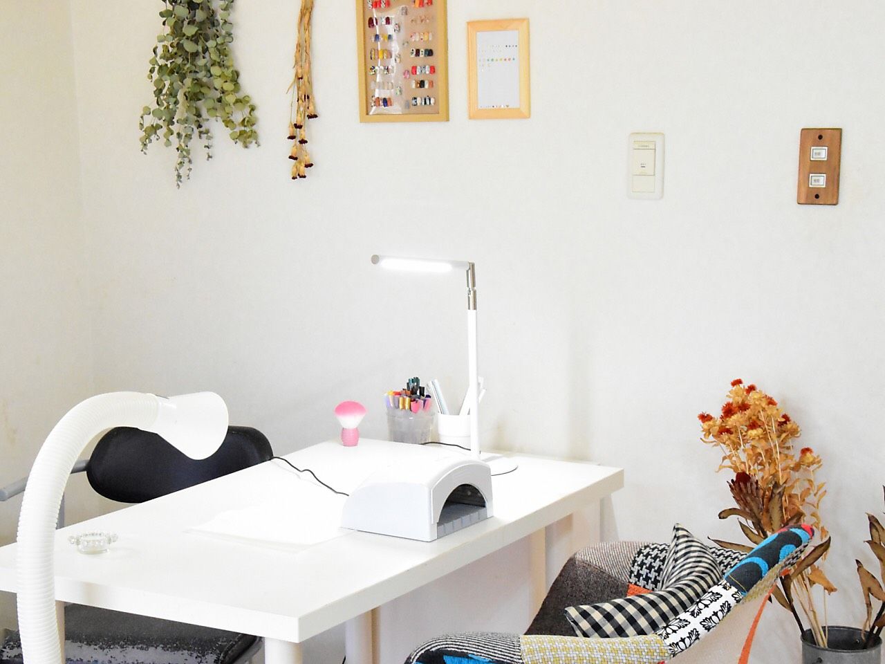 自宅リビングの一角にスペースがあるので、家にいるようなゆったりとした気分でネイルを楽しめます。