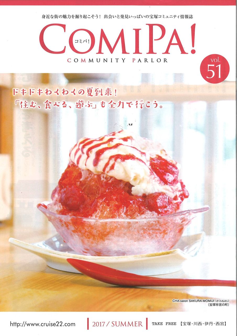 今回の表紙は「さくらもみじ(CHA-salon SAKURA-MOMIJI)」さんのいちごみるくかき氷です。